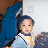 Matthias is 9 months 2 weeks and 6 days old. He is now, as you know starting to stand on his own and is trying to walk around while holding onto tables and chairs. Has not 1, but 2 teeth growing. And last but not least, his favorite thing to suck on is a lolly-pop:) sugar free of cause.